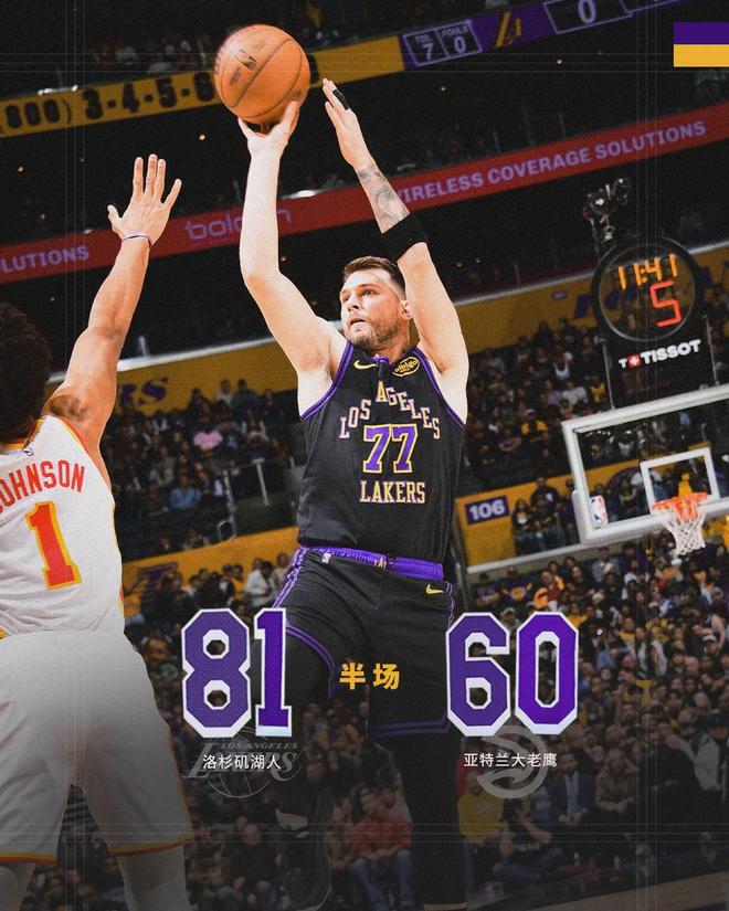 東契奇上半場9中5砍下23分3板7助,詹姆斯12分4板7助2帽;沃克16分2板1助、麥科勒姆16分。易邊再戰(zhàn),湖人最多領(lǐng)先到32分。第三節(jié)后半段,老鷹發(fā)起瘋狂反撲。東契奇連續(xù)3個(gè)失誤,老鷹兩分鐘內(nèi)打了一波10-0追到20分。