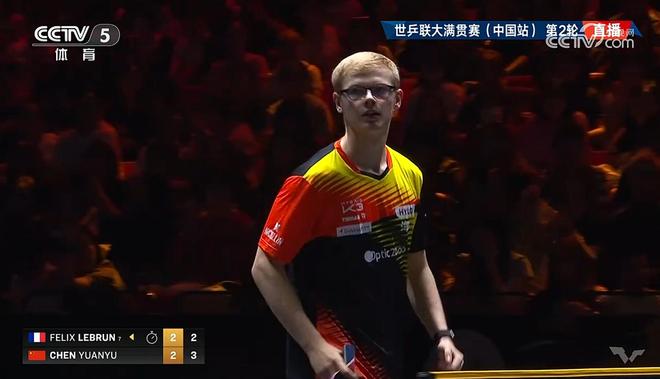 10月1日,WTT中國(guó)大滿貫?zāi)袉?/16決賽,陳垣宇決勝局浪費(fèi)了一個(gè)賽點(diǎn),最終以2-3(3-11、11-4、11-5、8-11、10-12)不敵F-勒布倫,無(wú)緣男單16強(qiáng)。