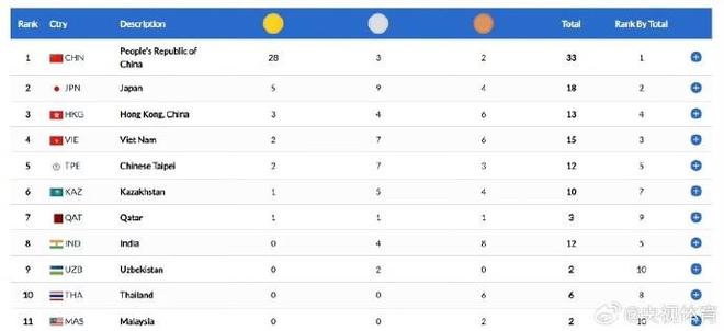 - 據(jù)@央視體育 消息,第11屆亞洲游泳錦標(biāo)賽在印度落幕,中國(guó)游泳隊(duì)共收獲28金3銀2銅,高舉獎(jiǎng)牌榜首位。中國(guó)隊(duì)獲得本...發(fā)表于: 10-03 02:37