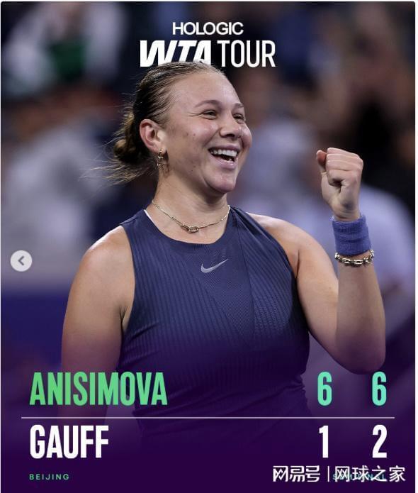 這場(chǎng)勝利是阿尼西莫娃本賽季第五次闖入巡回賽決賽,也是她今年第二次、職業(yè)生涯第三次躋身WTA1000級(jí)別決賽。這一成績(jī)充分展示了她在2025賽季的穩(wěn)定表現(xiàn)和顯著進(jìn)步。而對(duì)于衛(wèi)冕冠軍高芙而言,這場(chǎng)失利終結(jié)了她在中網(wǎng)的10連勝紀(jì)錄,未能在北京成功衛(wèi)冕。