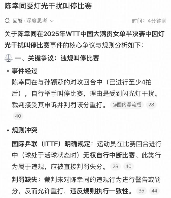 雖然這個(gè)球?qū)Ρ荣惖挠绊憥缀跷⒑跗湮ⅲ谫惡筮€是上了無數(shù)個(gè)熱搜,很多球迷粉絲質(zhì)疑陳幸同的這個(gè)做法是否合規(guī),是不是故意欺負(fù)孫穎莎,搞孫穎莎心態(tài)。