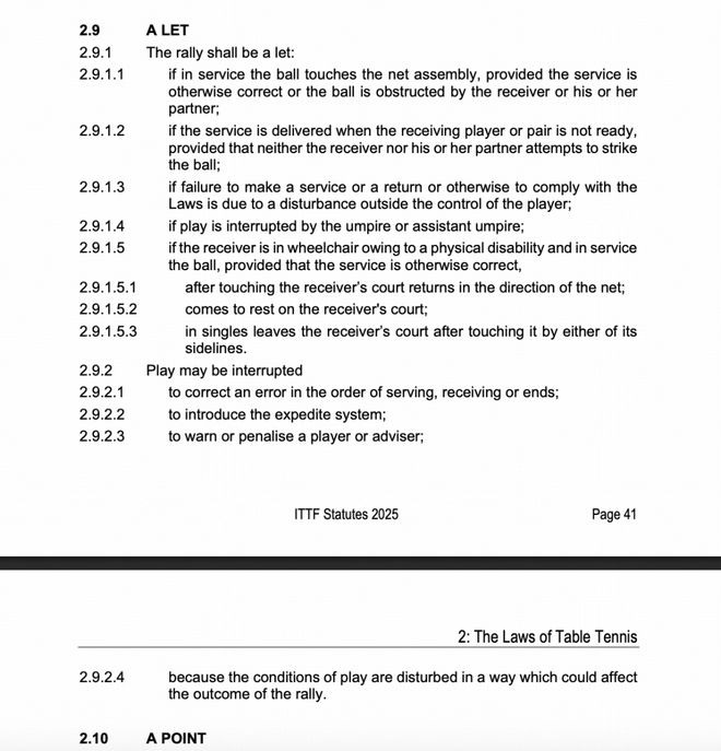 為此,我查了國(guó)際乒乓球協(xié)會(huì)的最新的規(guī)則手冊(cè),找到了有關(guān)“重新發(fā)球”的部分。