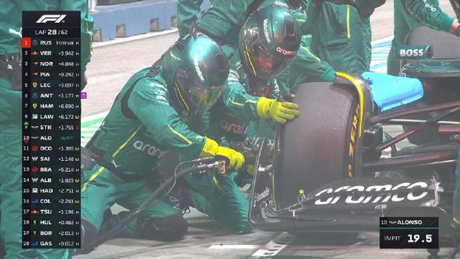 第二十八圈:阿隆索進站換胎,用時9.2秒