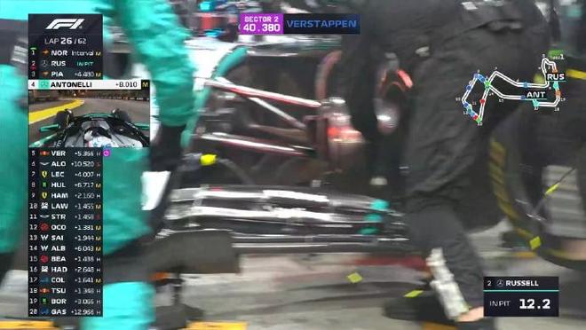 第二十六圈:拉塞爾進站,出站后落在了第四位