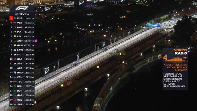 F1新加坡站正賽:拉塞爾桿位奪冠,維斯塔潘亞軍,邁凱倫三四