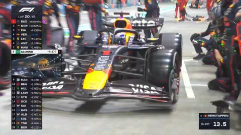 第二十圈:維斯塔潘進站并換上了一套全新的硬胎