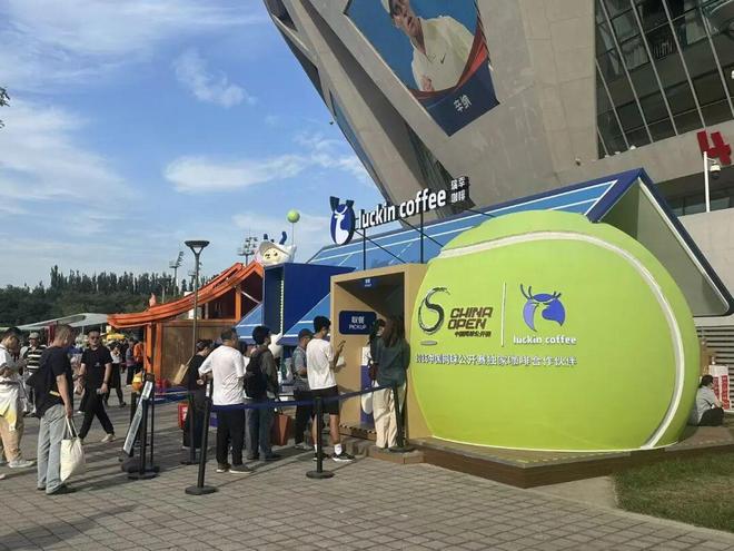 而走進(jìn)中國網(wǎng)球公開賽的西廣場(chǎng),最直觀的感受是不知道喝什么好。往左走是品品香的白茶攤位,往右是瑞幸的咖啡屋,不遠(yuǎn)處還有「補(bǔ)水啦」的特別展位。