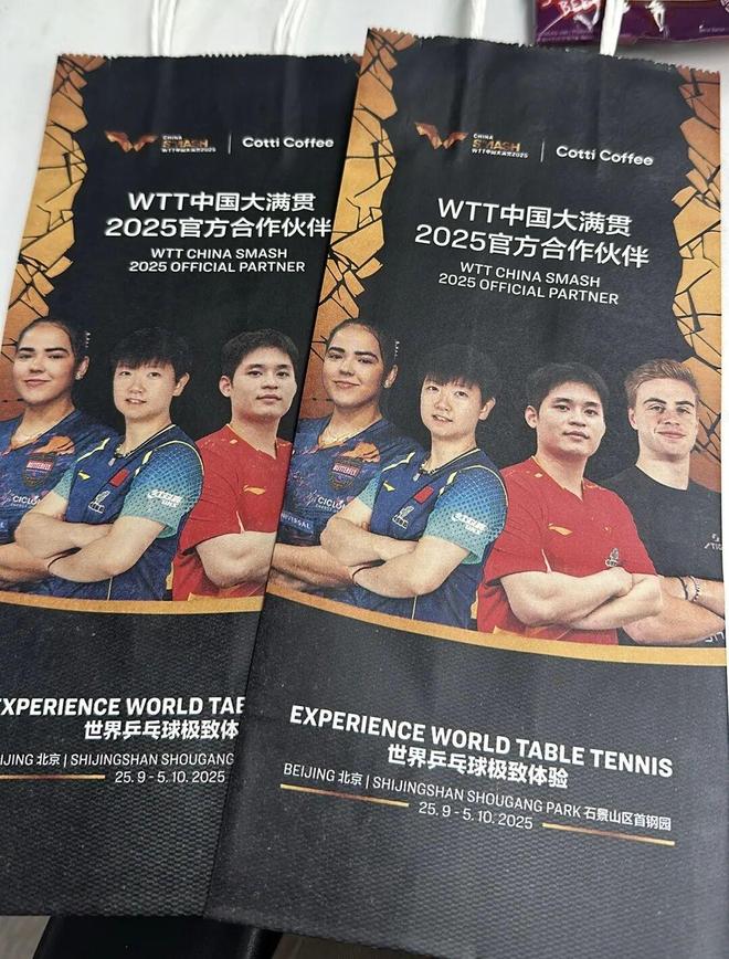 WTT中國大滿貫的官方合作伙伴庫迪咖啡也毫不遜色,狠狠刷了一波存在感。賽事期間,庫迪直接在全國門店統(tǒng)一上線限定款包裝袋。賽場(chǎng)內(nèi)外,隨處可見提著同款袋子的球迷。甚至還有不少粉絲將紙袋二創(chuàng)的攻略分享到了社交媒體,自發(fā)成為流動(dòng)的廣告牌。