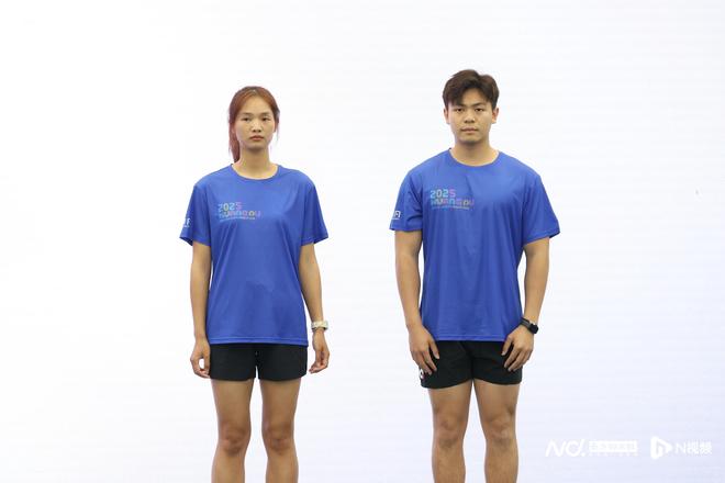 服裝正面印有動(dòng)態(tài)線條風(fēng)格的“2025 HUANGPU”字樣,線條靈感來源于精密芯片的電路紋理,彰顯了黃埔作為粵港澳大灣區(qū)科技創(chuàng)新引擎的定位。