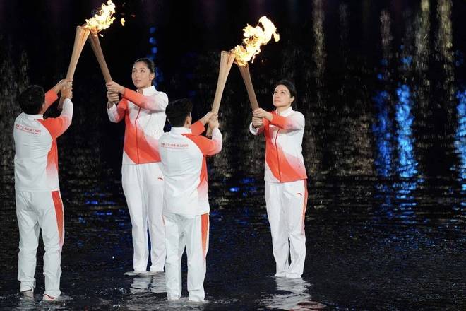 ▲安踏打造的國(guó)家隊(duì)比賽裝備完成交接