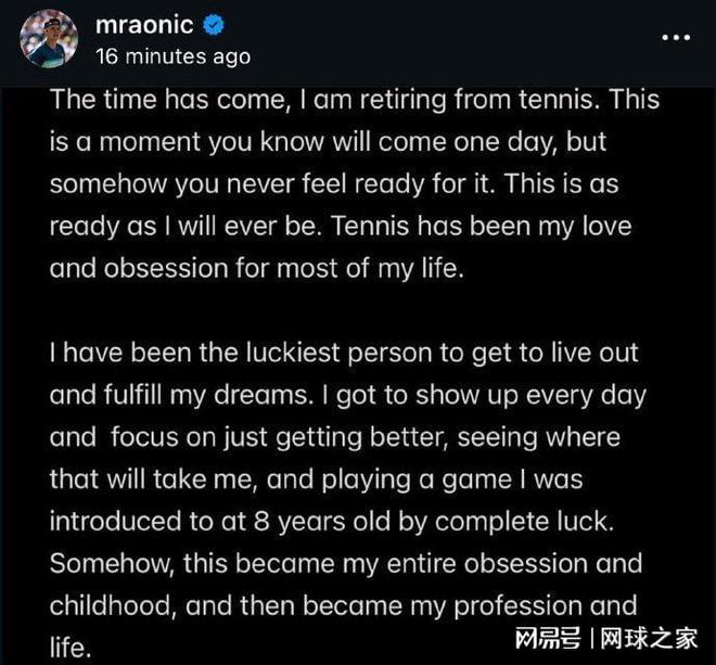 每天三分鐘,知曉天下網(wǎng)球事。球迷朋友大家好,今天是2026年1月12日星期一。歡迎收聽收看由《網(wǎng)球之家》為您提供的新聞午報。北京時間今晨,加拿大名將米洛斯-拉奧尼奇在個人社交