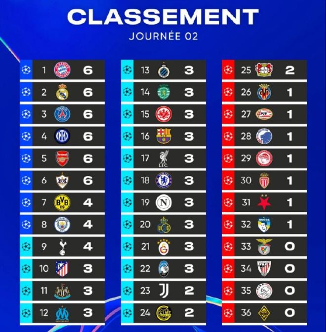 10月2日凌晨,多場(chǎng)歐冠比賽同時(shí)進(jìn)行。至此,歐冠聯(lián)賽階段的2輪比賽全部結(jié)束。最新的積分榜上,幾家歡喜幾家愁。拜仁皇馬等6隊(duì)2連勝,而巴薩和利物浦則只有3分,藥廠則位于淘汰區(qū)。前2
