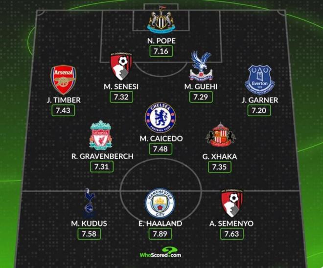 WhoScored列出本賽季英超開(kāi)賽至今的最佳陣容,哈蘭德、凱塞多、扎卡、廷伯在列。